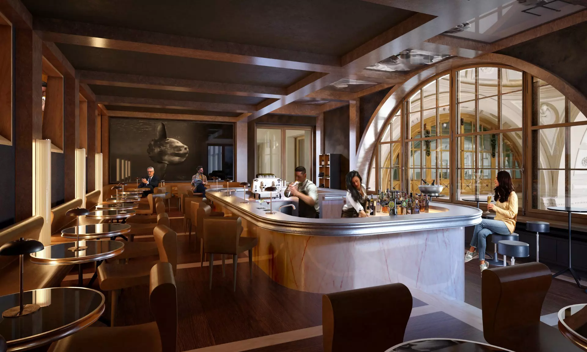 Stepping into Au Premier, guests leave behind the hustle and bustle of Zurich’s main station. In an elegant setting with arched windows, marble, and dark wood, the bar delights visitors with coffee, classic cocktails, fine wines, and creative cuisine – from light snacks to seasonal dishes. The perfect haven for a relaxing pause before your onward journey or a leisurely meeting in the heart of Zurich.