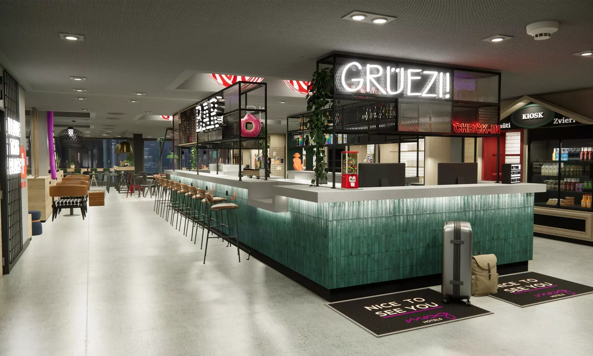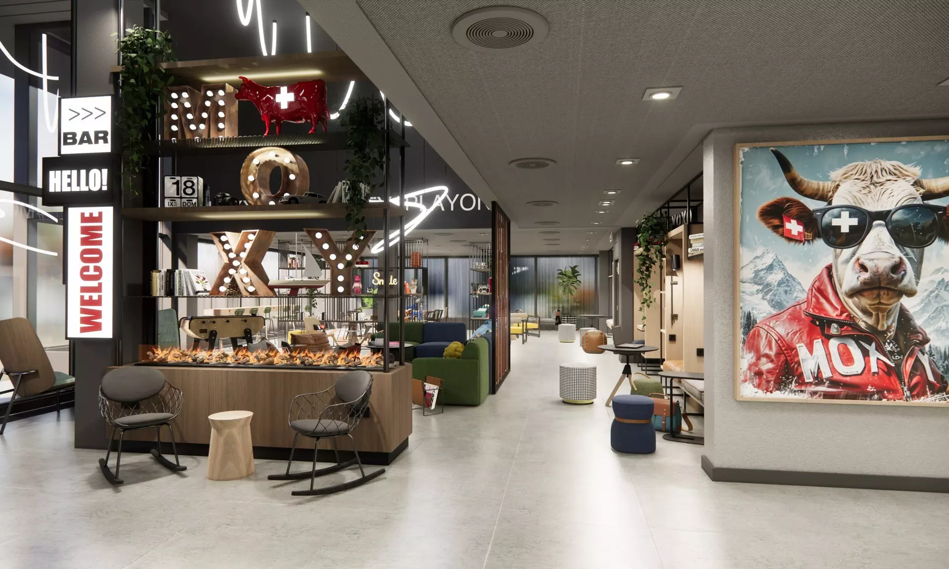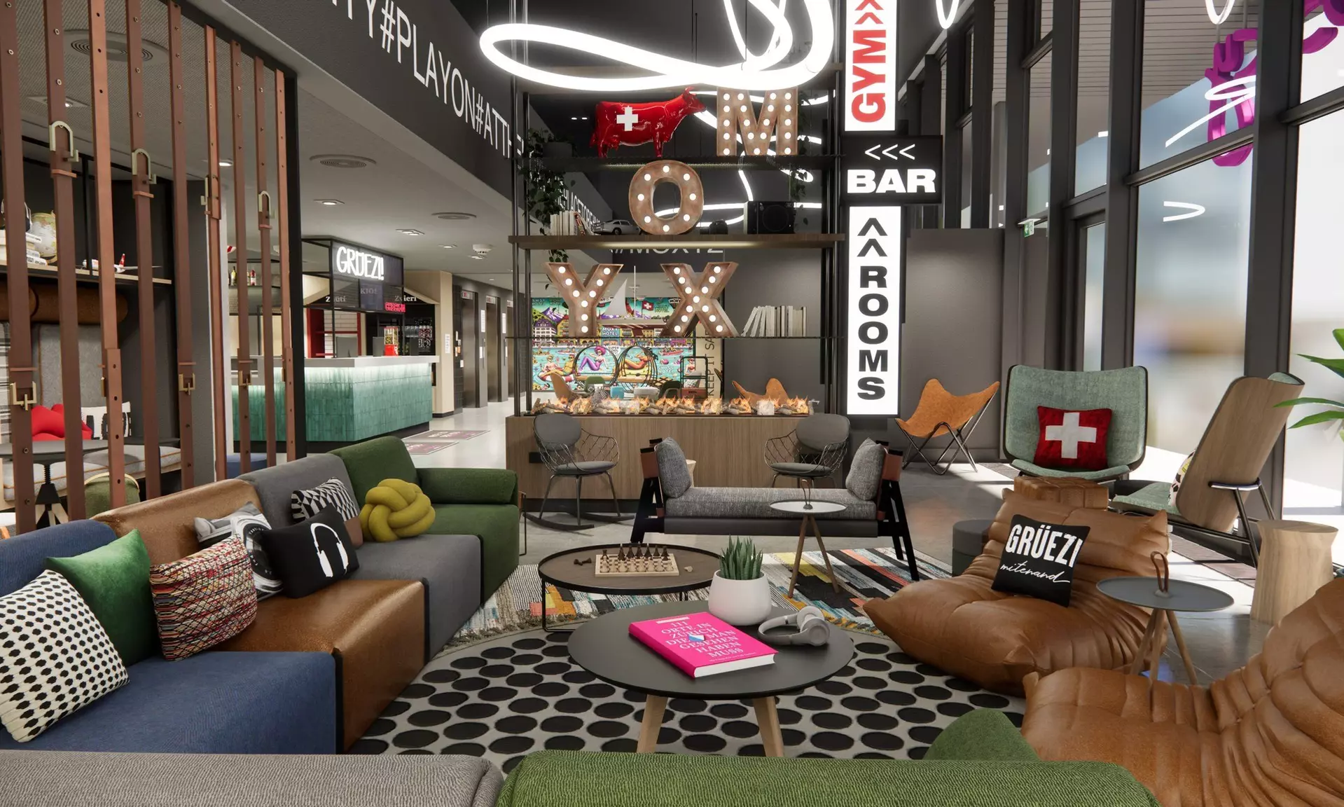 Au cœur de l’hôtel se trouve le lobby ouvert avec bar, lounge et espaces de coworking, qui invite à faire une pause à toute heure. Des snacks, boissons et spécialités de café y sont proposés, idéals pour des rythmes de journée flexibles. Grâce à son emplacement central à côté du stade du Letzigrund, de la Limmat et de nombreux restaurants, bars et lieux culturels, le Moxy Zurich constitue un point de départ idéal pour découvrir la ville.