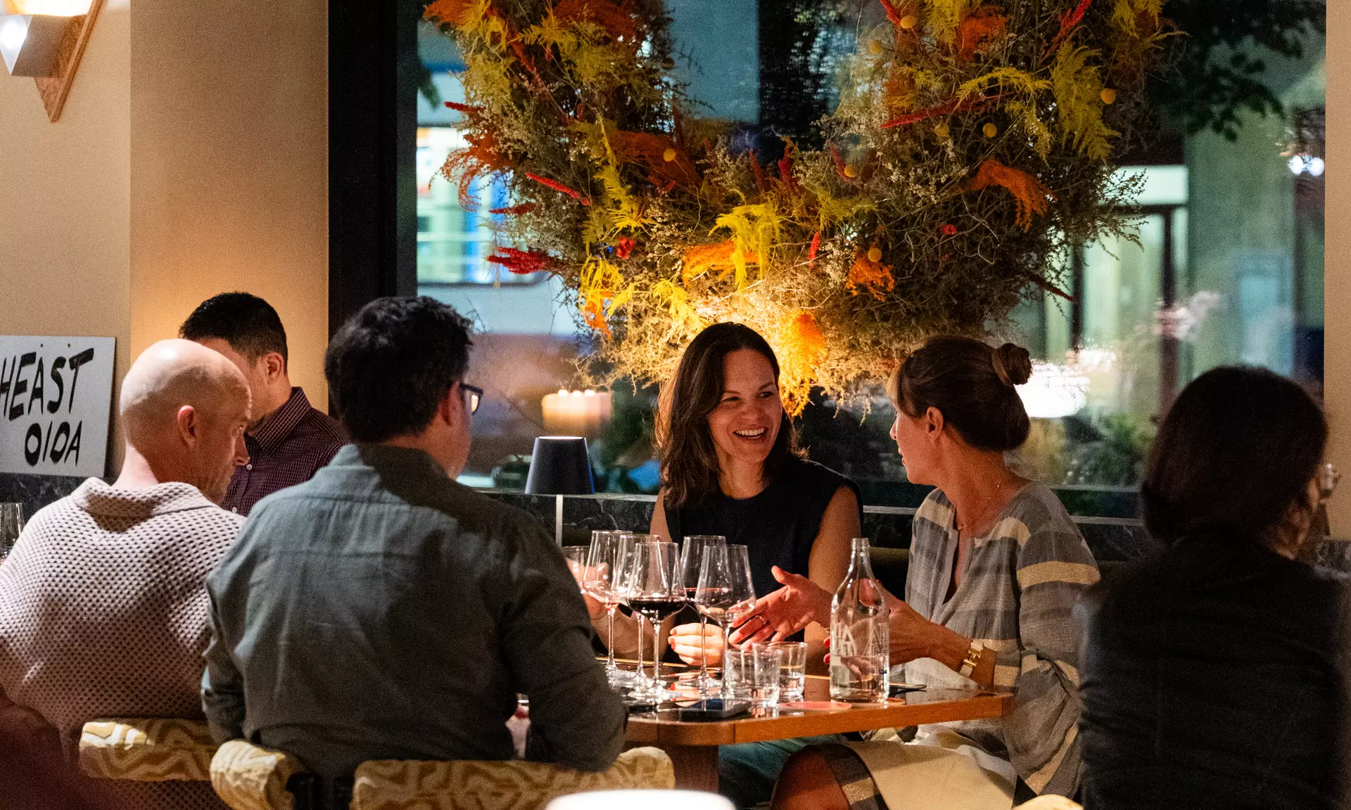 Confortablement installés dans les canapés moelleux du salon, les hôtes peuvent prendre un verre ou déguster ensemble de petits plats à partager.