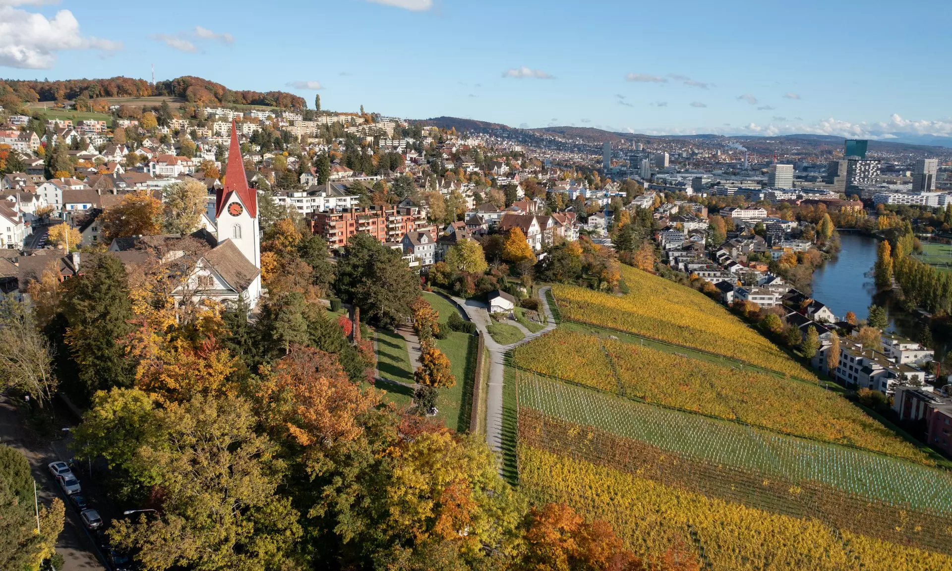 La ville de Zurich possède sa propre exploitation agricole avec le Juchhof, dont le sol produit d’excellents crus. Par exemple le pittoresque vignoble « Chilesteig » du quartier Höngg où les Romains exploitaient probablement déjà des vignes. Le Juchhof cultive ici Riesling-Sylvaner, Räuschling, Pinot Gris et Pinot Noir entre l’église et la Limmat, pour consciencieusement et amoureusement produire le vin urbain de Zurich.